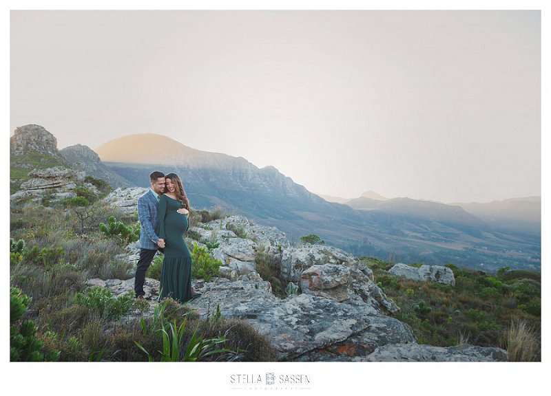 We went adventuring for this maternity shoot - and it was chilly as the sun set in the mountains, but Sharné was a trooped, braved the cold and we managed to get some lovely images as the syn was setting over Cape Town.